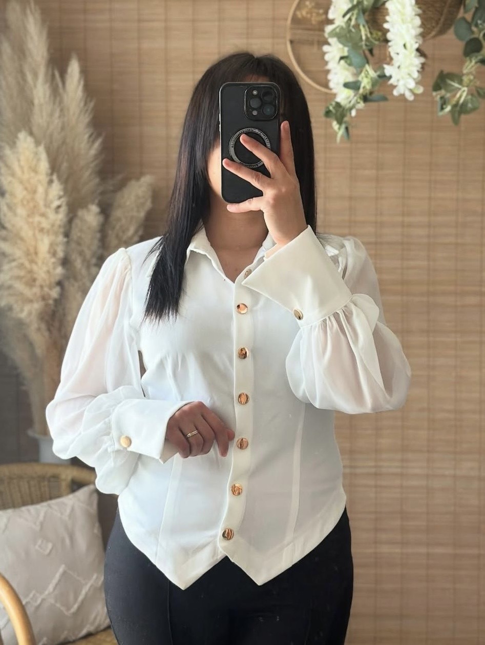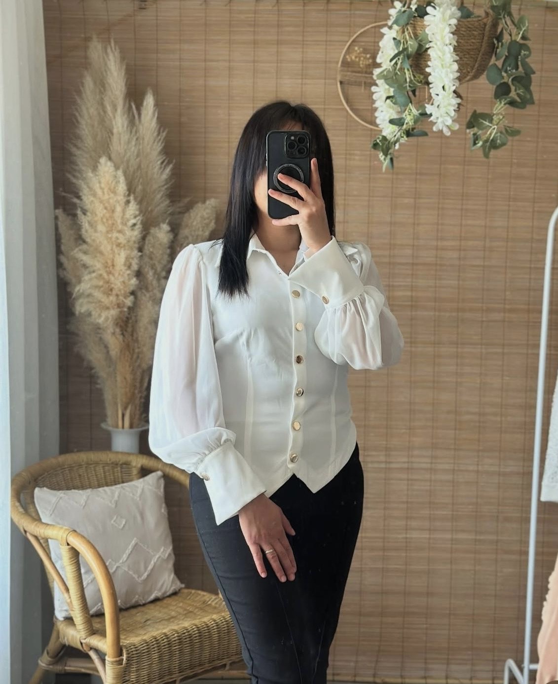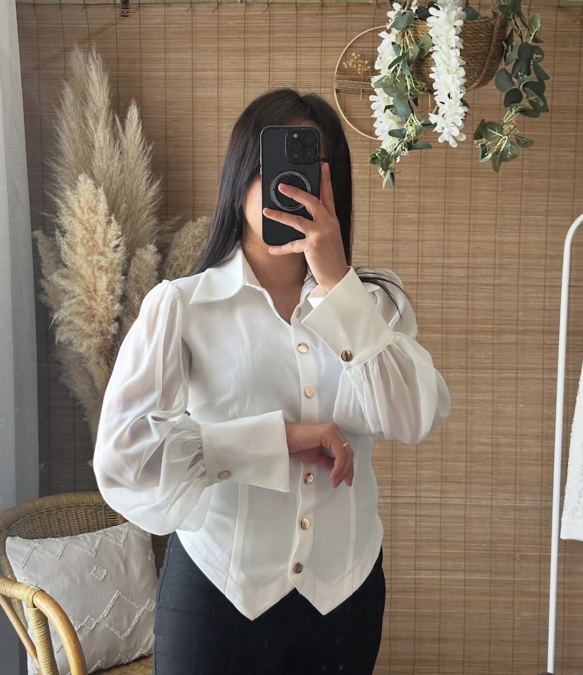 Blouse blanche – Une pièce chic et intemporelle, parfaite pour toutes les occasions. Ses manches raffinées apportent une touche de féminité et d’élégance. Confortable et fluide, cette blouse est disponible en plusieurs tailles pour s’adapter à toutes les morphologies.