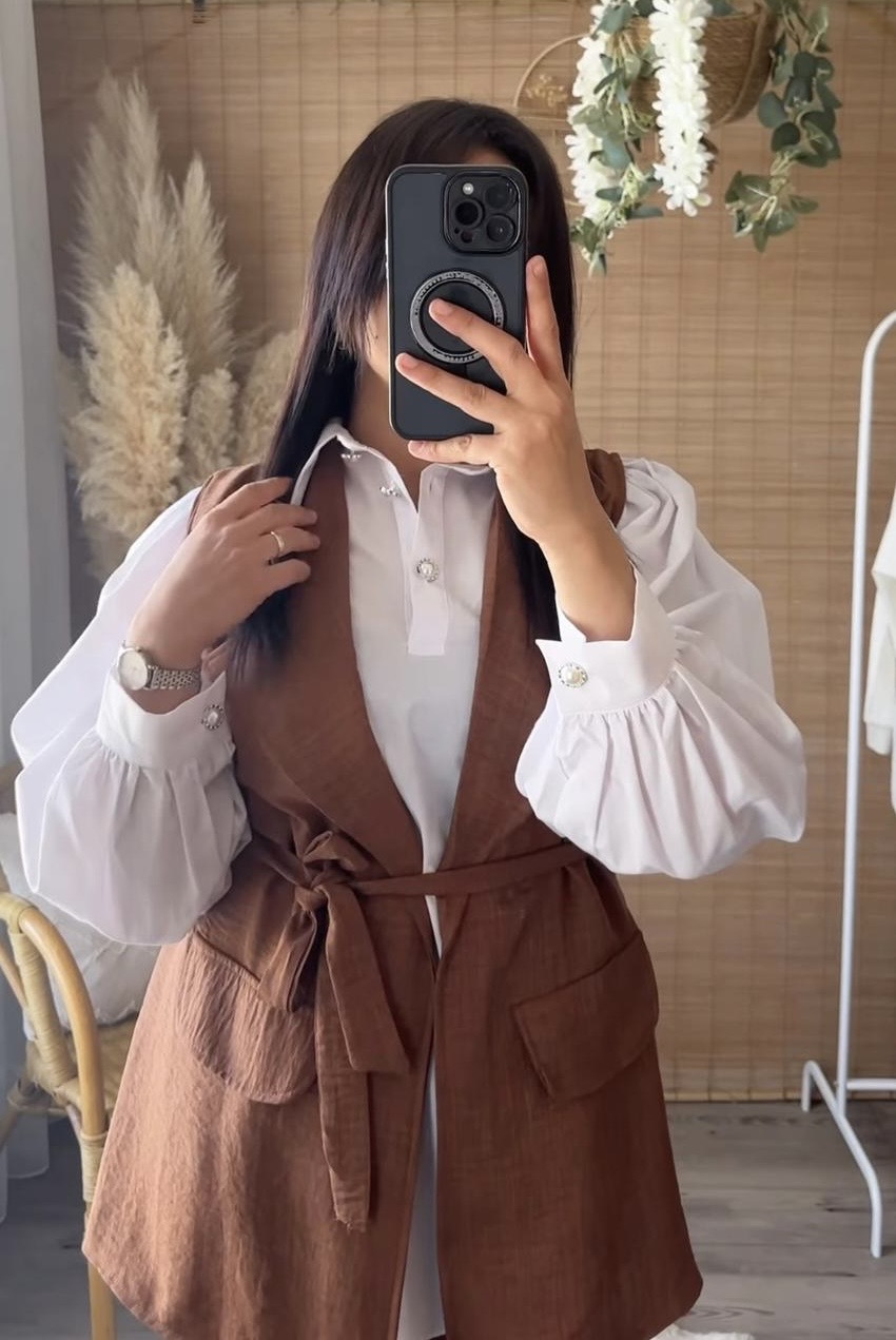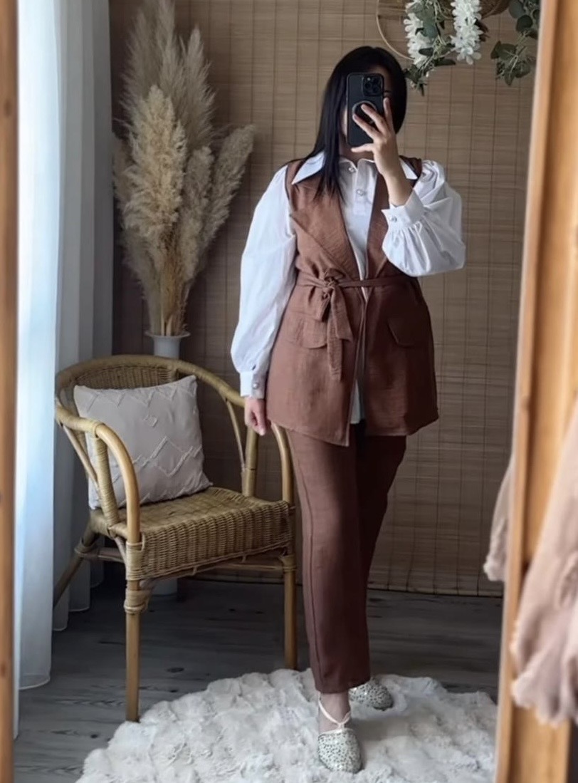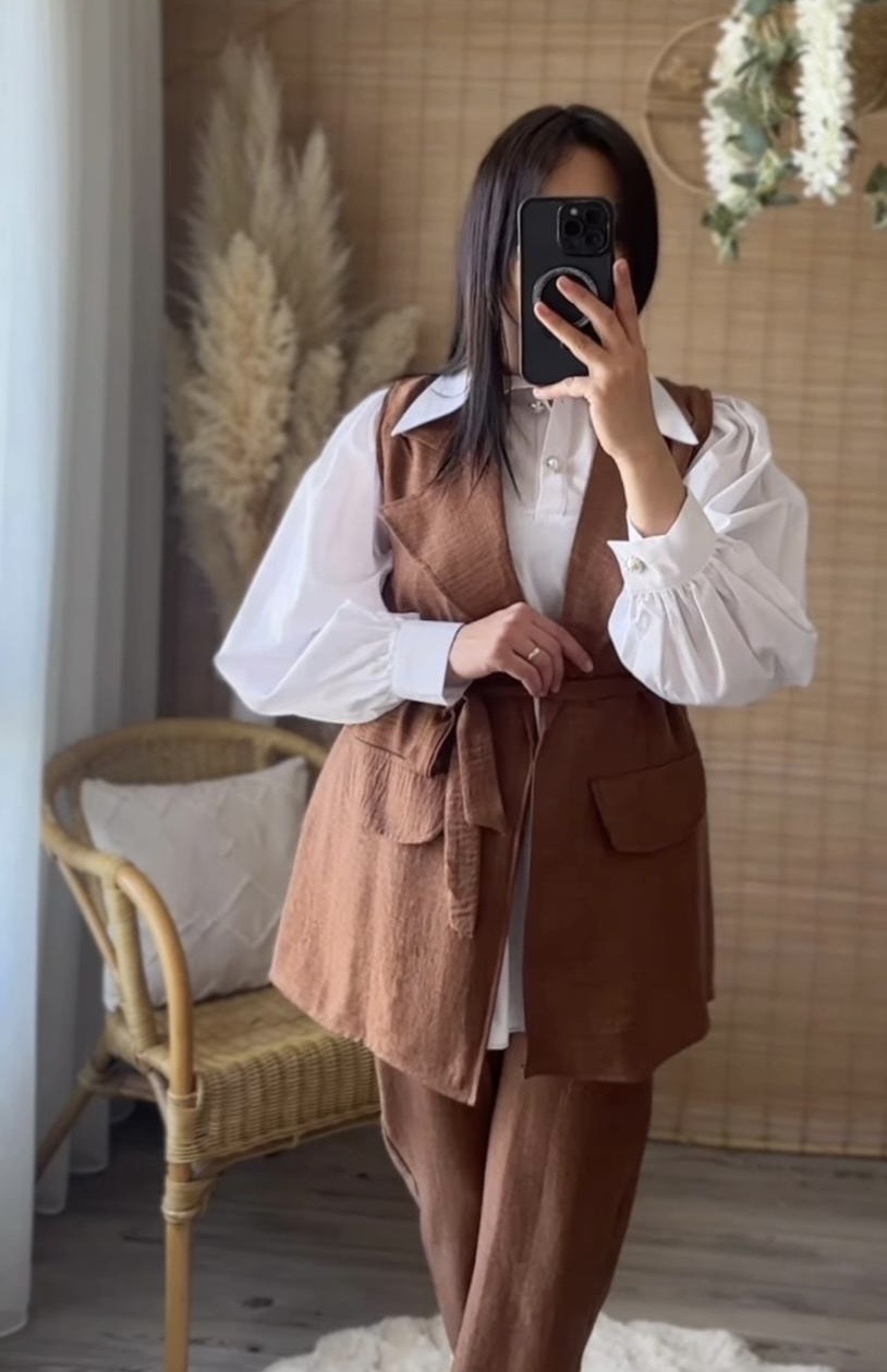 Ensemble marron – Élégant et moderne, cet ensemble comprend un pantalon fluide et un haut sans manches assorti. Confortable, léger et tendance, il offre une allure chic en toute simplicité. Disponible en plusieurs tailles.
